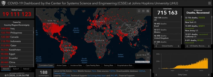 Тем не менее Университет Джонса Хопкинса поднял позиции Казахстана на 26-е место в антирейтинге стран по числу зараженных коронавирусом. Наша страна обогнала Китай, Эквадор и Египет. Всего в мире число заражений превысило 19 миллионов человек.