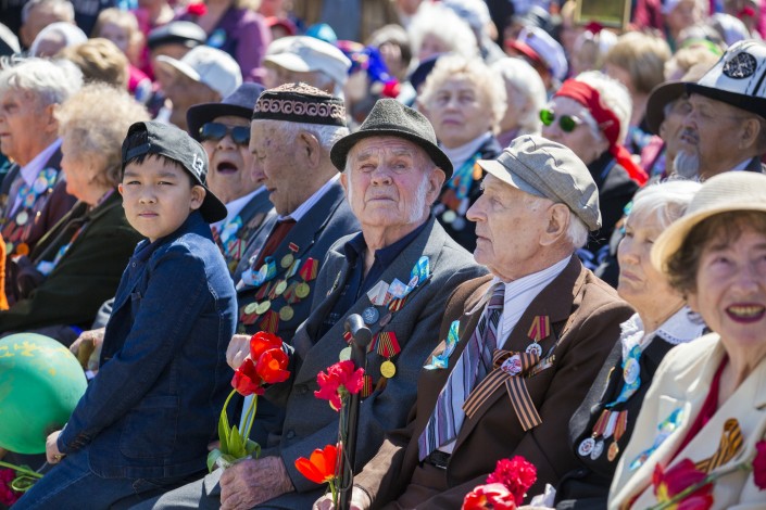 Патриотическая акция в ВКО в этом году набрала небывалый масштаб. Впервые "Бессмертный полк" появился на улицах Усть-Каменогорска в 2014 году. В прошлом году он насчитывал около десяти тысяч человек, а сегодня их число превысило 20 тысяч. Вместе с горожанами в шествии в память о погибших бойцах принял участие аким области Даниал Ахметов. Он прошел до мемориала Славы, держа в руках портрет своего отца - ветерана Великой Отечественной войны.