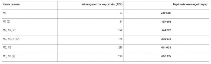 Істен шыққан көлік құралын өткізгені үшін 2022 жылы айлық есептік көрсеткіш мөлшері өзгеруіне байланысты, көлік санаты мен жиынтығына байланысты 165 402 теңгеден бастап 606 474 теңгеге дейінгі аралықта ақшалай өтемақы беріледі.