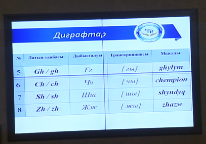 "Создание настоящего проекта алфавита в первую очередь учитывало звуковую систему казахского языка. В результате предлагаемый алфавит состоит из 25 знаков. За основу был взят такой принцип: одна буква - один звук, одна буква - два звука и один звук система диграфа. Для полноценного обеспечения звуковой системы казахского языка в алфавит было включено восемь диграфов, обозначающих восемь специфических звуков", - сообщил Ербол Тлешов.