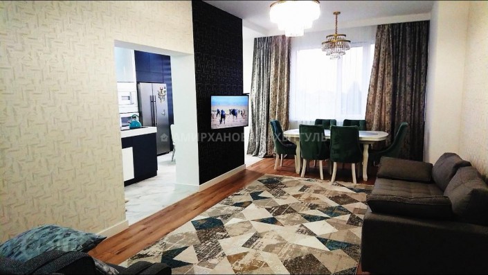 Расположена она в жилом комплексе "Жайлау" на пересечении проспекта Аль-Фараби и улицы Мустафина. Автор объявления сдержанно информирует: в квартире с авторским дизайном две спальни, гостиная, паркинг, а из окна открывается вид на горы.