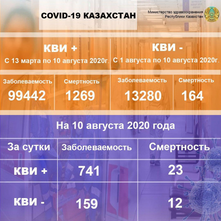 Также известно, что за прошедшие сутки (9 августа) в Казахстане зафиксировали 741 новый случай COVID-19 и 159 случаев заболевания пневмонией с признаками коронавирусной инфекции. При этом 250 человек выздоровели от КВИ.