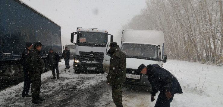 Ранее 27 автомашин застряли на перевале Кеген в Алматинской области из-за снега.