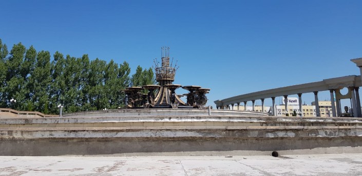 Отмечается, что это самый крупный фонтан в Казахстане. Запущен в 2010 году. Из-за сильного износа был закрыт на капитальный ремонт в прошлом году и сейчас находится аварийном состоянии.