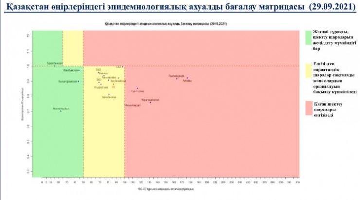 В "красной" зоне на сегодня Нур-Султан, Алматы, Акмолинская, Карагандинская и Павлодарская области.
