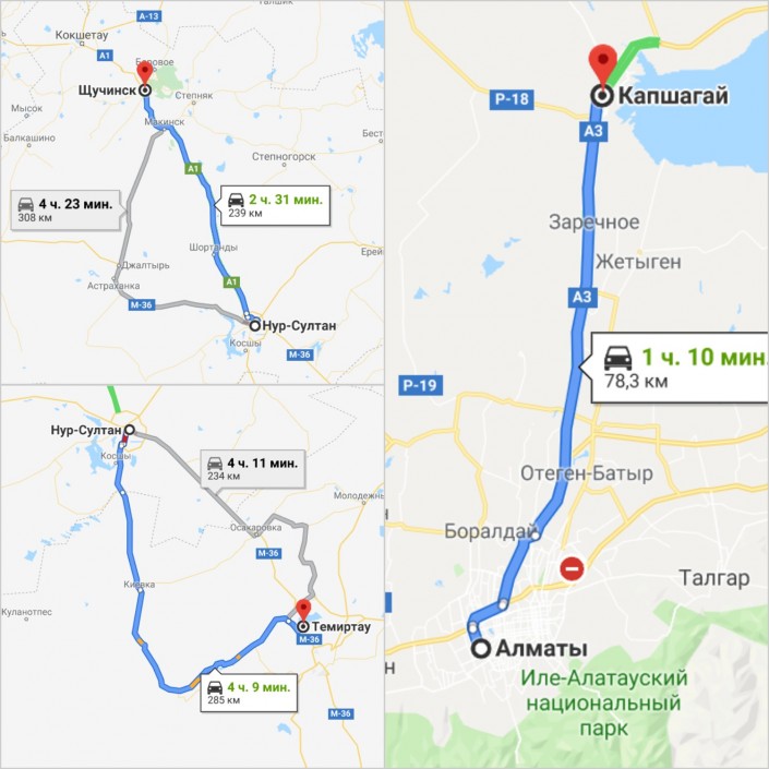 На сегодня в Казахстане функционируют четыре платные автодороги: Нур-Султан - Щучинск, 211 километров, Нур-Султан - Темиртау, 183 километра, Алматы - Капшагай, 42 и Алматы - Хоргос, 331 километр.