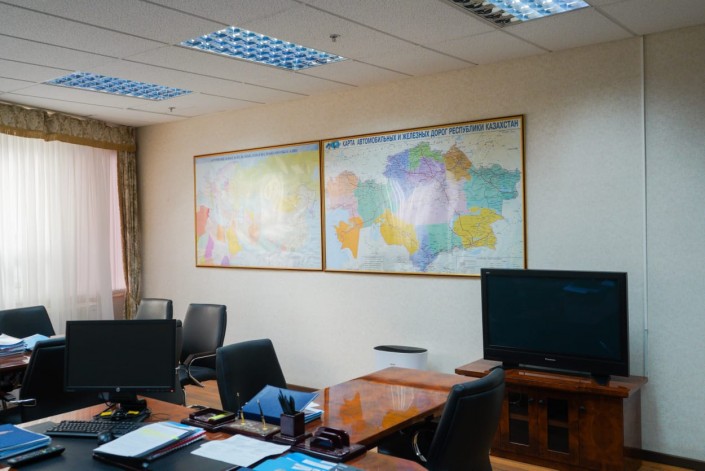 Одна стена кабинета Камалиева почти полностью занята огромной картой Казахстана. Под его юрисдикцией автомобильные и железные дороги, аэро- и морские порты, грузовые перевозки и другие вопросы. Посреди разговора вице-министр может подойти к карте и показать, где дороги "убитые", а какими можно гордиться.