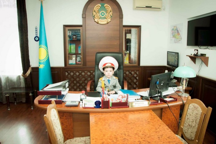 Два года назад она на заказ сшила сыну полицейскую форму для участия в областном детском конкурсе "Бүлдіршін", где малыш дважды занимал первое место. "Сын участвовал в конкурсе чтецов и попросил форму майора, это он так мне подражал. В пять лет на этом же фестивале читал стихотворение, что хочет быть генералом, пришлось шить генеральскую форму. Сейчас уже из нее вырос, все спрашивает, когда купим новую, мечтает стать генералом. Это его мечта, мы только стараемся ее развивать. Нет никакой муштры, как пишут некоторые в комментариях. Его интересуют военная тематика, история, полководцы, главнокомандующие. Например, кто такие Сталин, Жуков. Хочет побывать на танкостроительном заводе", - улыбаясь, говорит мама мальчика.
