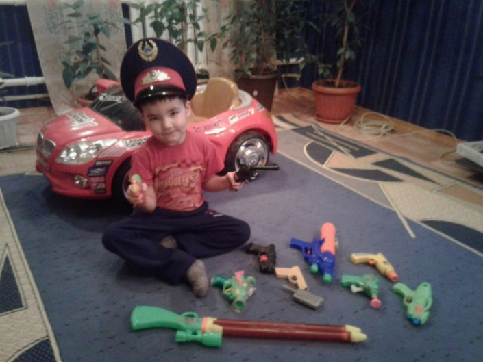 "Я сама сотрудник полиции, как-то дома готовилась к сдаче аттестации, сын был рядом. Даже не заметила, как он все схватывал на лету. Сидел, за мной повторял и расспрашивал обо всем, сначала его заинтересовал автомат Калашникова, потом пистолет. Потом говорит: "Я тоже хочу быть как ты полицейским", - говорит Гайбышева.