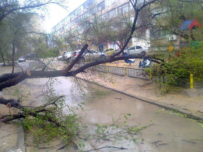 "По Актау работа по ликвидации последствий обильных осадков ведется на 7 участках: "Желтый рынок" 32 микрорайон, КГТУИ им. Ш.Есенова, ТЦ "Олжа" 30 микрорайон, территория 15 дома 28 микрорайон, 28 "а" Бизнес-центр "Аксункар", территория перед ТЦ "Астана" и автодорога между площадью "Ынтымак" и акиматом Мангистауской области. Привлечено 4 единицы спецтехники, 3 мотопомпы. Задействовано 12 человек. Кроме того, в результате сильного ветра возле 28 дома 14 микрорайона упало дерево на автомашину "Тойота Камри", также упало дерево во дворе 25 дома 8 микрорайона. Пострадавших нет. Бригады коммунальных служб выезжают по звонку от жителей, в чьих дворах есть упавшие деревья и их сразу же вывозят", - сообщила пресс-секретарь ДЧС Мангистауской области Гульнара Ходжабекова.