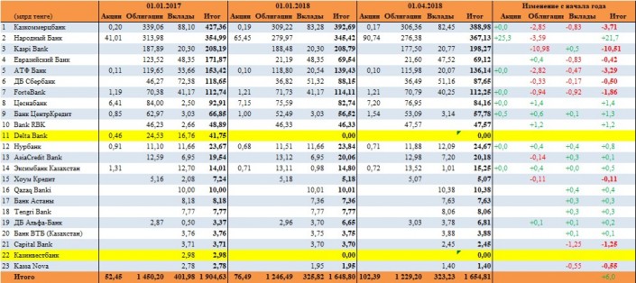 К началу апреля суммарные пенсионные накопления граждан Казахстана составили 7 974,07 миллиарда тенге, увеличившись на 2,5 процента с начала года. За 2017 год пенсионные накопления выросли на 16,4 процента, или 1 095,5 миллиарда тенге.