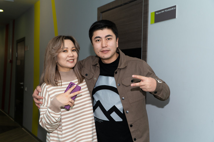 Главный редактор "Жұлдыз FM" Анар Мынбаева и радиоведущий Нурбек Касым. ©Ернар Алмабек