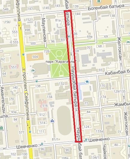 Седьмой участок будет находиться по улице Айтеке би - от Фурманова до Тулебаева.