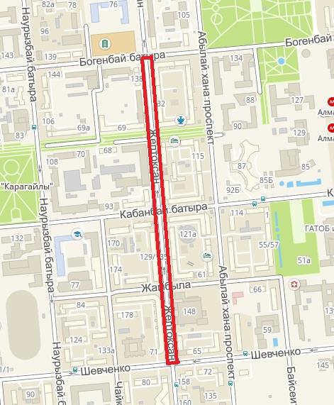 Пятый участок будет открыт по улице Желтоксан, на протяжении от Шевченко до Богенбай батыра.