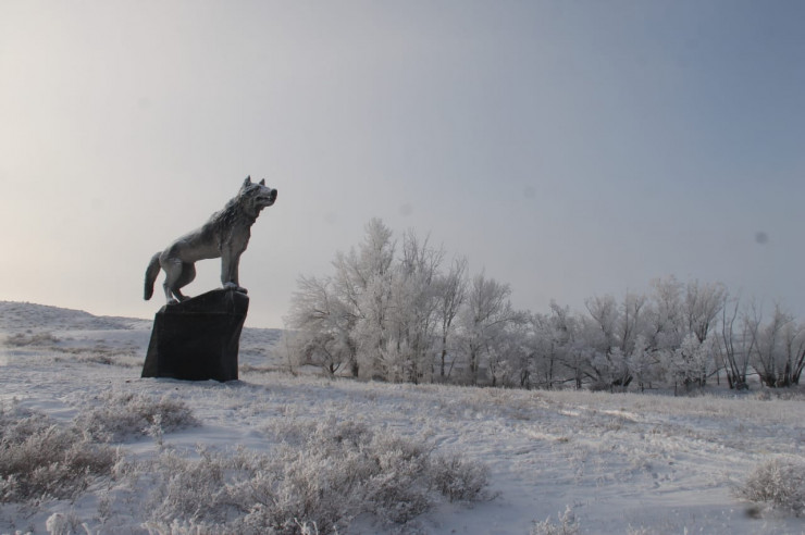 В Улытауском районе Карагандинской области установили девятиметровую скульптуру волка, передает корреспондент Tengrinews.kz.