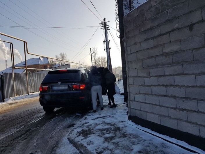 Она вышла с территории с пакетом, села во внедорожник и быстро уехала.