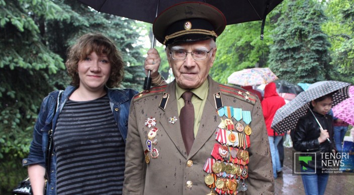 После речи акима прозвучал гимн Казахстана, а затем состоялось возложение цветов. Собравшиеся поздравляли ветеранов и кричали "Спасибо за победу!". "Для меня День Победы самый лучший и дорогой праздник. Спасибо, что нас не забываете и помните наш подвиг. Я воевал на Втором Прибалтийском фронте, в штурмовой инженерно-саперной бригаде. Мы прошли от города Невель до Риги", - сказал ветеран войны Петр Луньков.