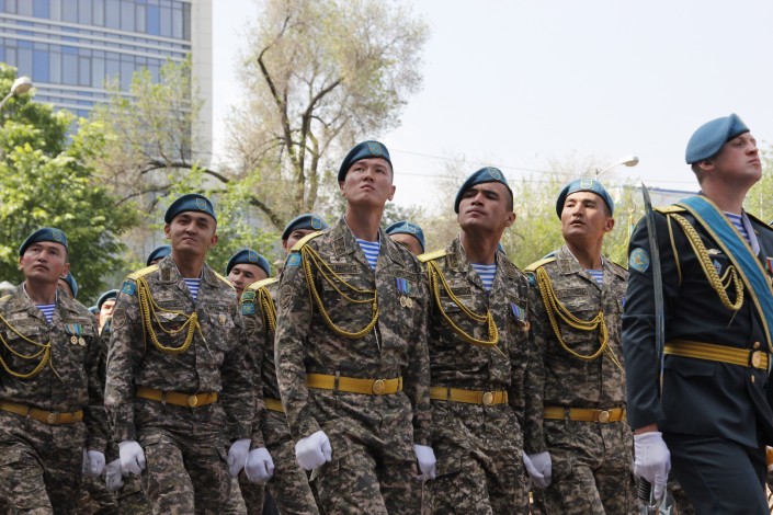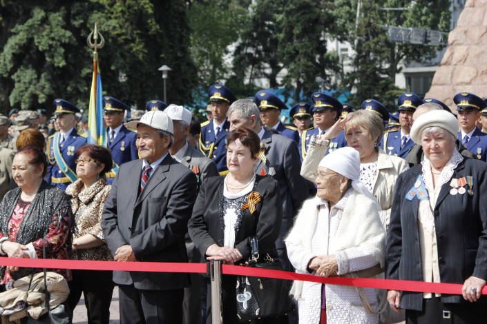 После на площади Абая прошли показательное выступление с оружием курсантов службы Государственной охраны и маршировка других военнослужащих. Всего в мероприятии приняли участия более 500 военнослужащих. Праздник завершился выступлением артистов. Организатором мероприятия выступил Департамент по делам обороны Алматы.