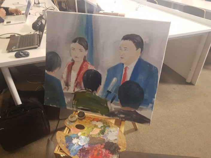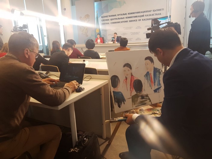После пресс-конференции художник Женис Молдабеков сообщил, что приехал он из Павлодара, однако сотрудником акимата он не является и сам изъявил желание изобразить акима в красках.