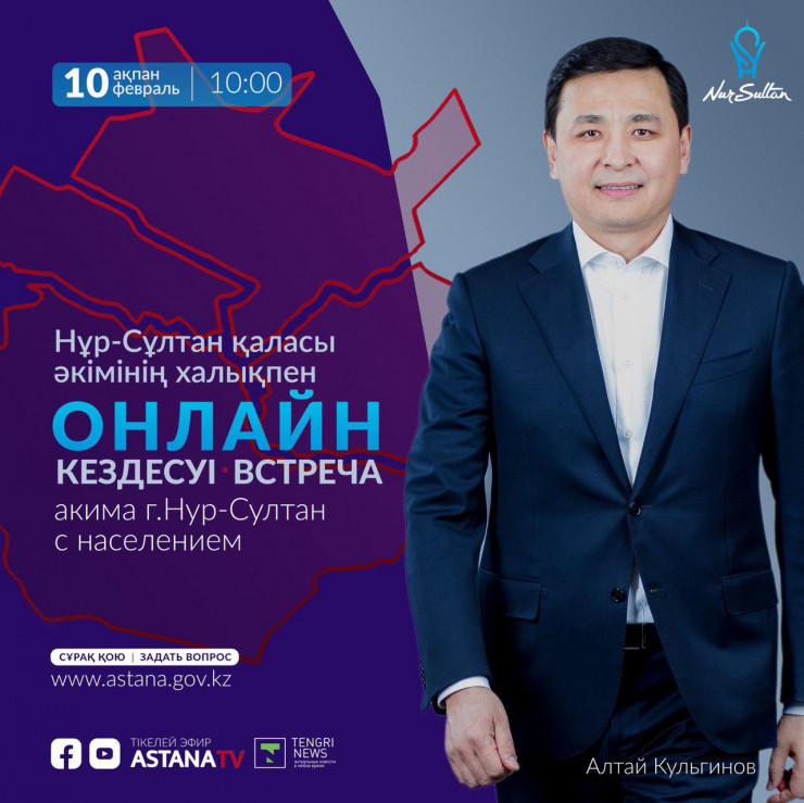 В связи с пандемией коронавируса встреча пройдет в онлайн-формате и будет транслироваться в официальных аккаунтах акимата столицы в YouTube и Facebook, а также в прямом эфире на телеканале "Астана" и портале Tengrinews.kz.