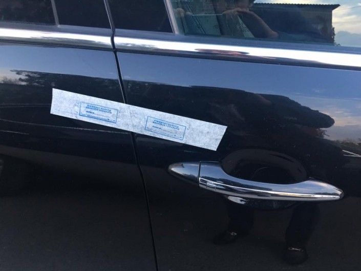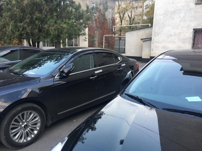 Опечатанные автомобили на парковке акимата Шымкента. Фото©Данат Жумин