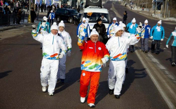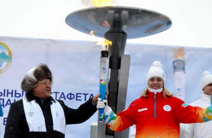 В Павлодаре факел Универсиады зажгли 26 января, однако аким области Булат Бакауов, даже если и посетил эстафету, в объективы фотокамер не попал. Зато героем спортивного праздника стал квартет ездовых хаски, который прокатил на санях мастера спорта по тогызкумалаку Анастастию Фосс, несущую факел Универсиады.