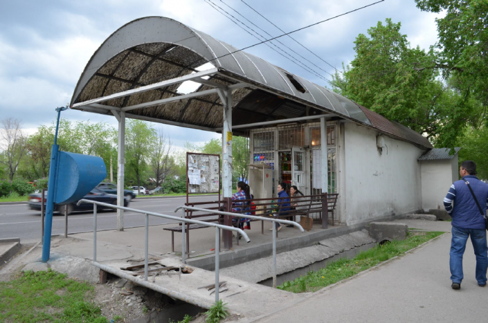 "Транспортная развязка в четыре различных направления и пересечения крупных улиц: Райымбека, Суюнбая и Пушкина. Сюда приезжают областные автобусы. Здесь сразу бросается в глаза отсутствие специального пространства для посадки и высадки пассажиров по проспекту Райымбека - того, чем являлся старый автовокзал, а существующие остановки как будто рассчитаны только на городской поток пассажиров, не учитывая областного объема. Видно не только проблему с недостатком остановок, но и с транспортной и дорожной системами. Автобусы и маршрутные такси паркуются иногда поперек полосы движения, закрывая ее. Также же они паркуются и делают посадку на левой полосе движения, игнорируя площадку перед остановкой", - отмечается в исследовании.