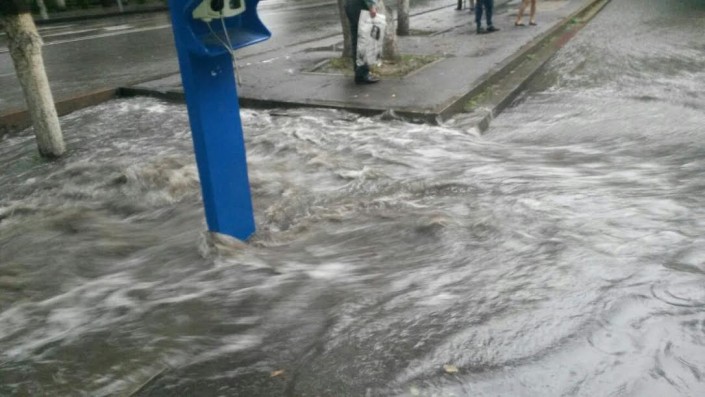 Арык на пересечении проспекта Достык и улицы Толе би вновь заполнился водой.