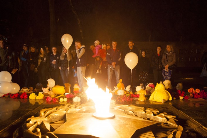 Горожане возложили цветы, принесли игрушки и запустили белые шары в парке 28 панфиловцев. В мероприятии приняли участие около 50 человек, в основном молодежь.