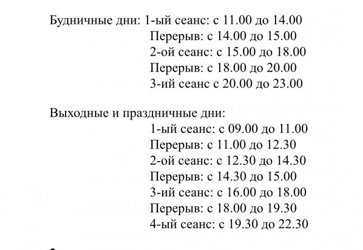"Каток будет работать семь дней в неделю без выходных. В будни будет три сеанса по три часа. В выходные будет четыре сеанса по два часа.