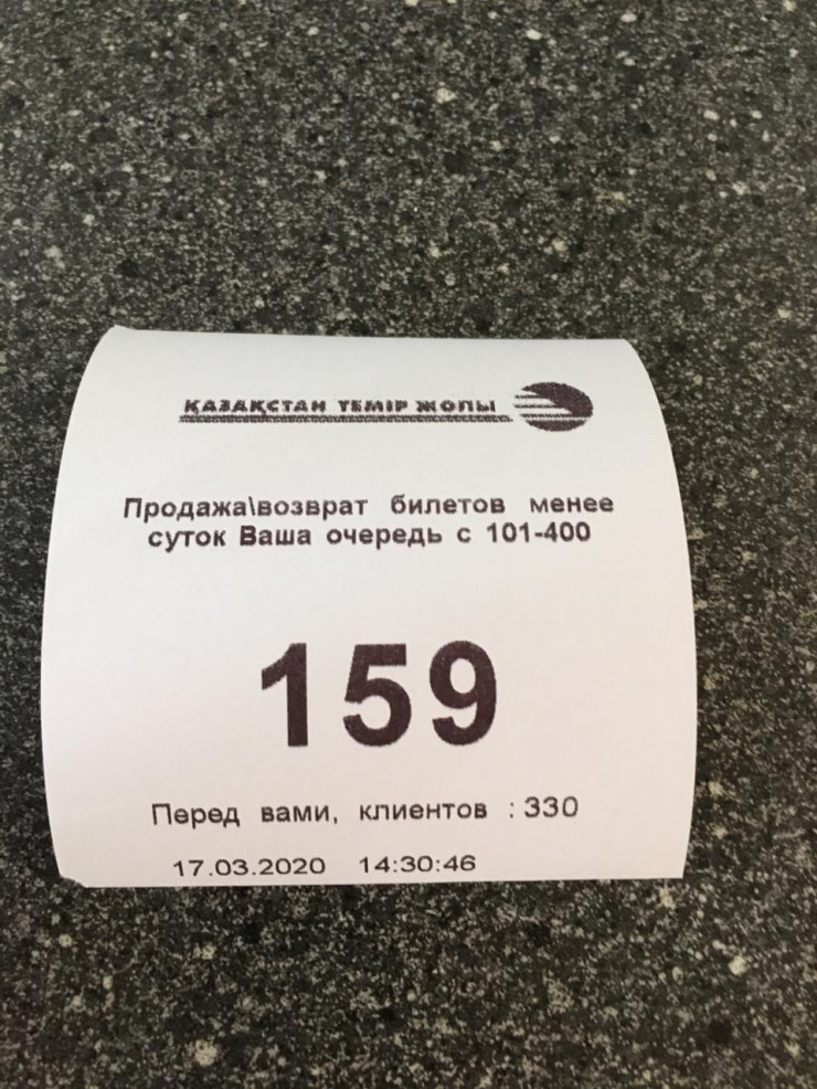 "Талон берешь, там написано, что перед вами 100 человек. Вчера моя очередь подошла, но мне сказали, что я не в приоритете, потому что сейчас сдают те, у кого билет на ближайшие сутки. Но очень медленно работают кассы. За пять часов обслуживается только 30 человек. Все сейчас пытаются изолироваться, но то, что здесь образовалось, я считаю чем-то нехорошим", - говорит алматинец.