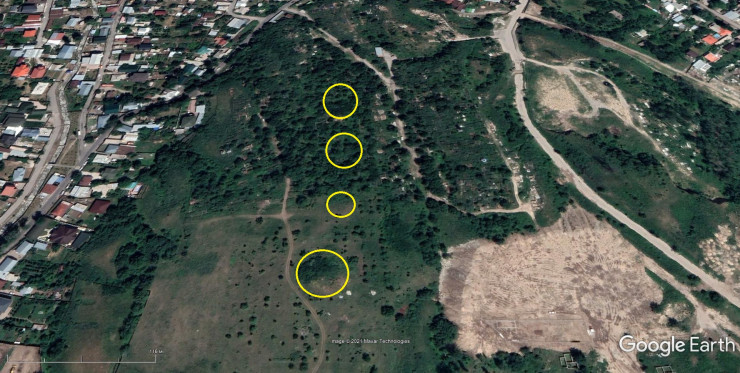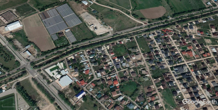 Могильник Орынтай. На фото зеленые пятна в застройке - это царские курганы.
