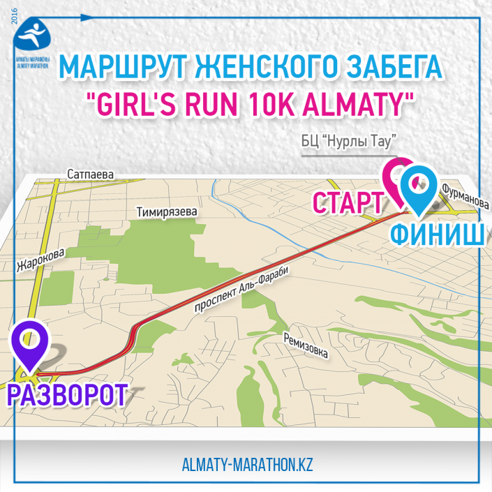 В ближайшее воскресенье в Алматы пройдет "женский забег" - Girl’s Run 10k Almaty, в связи с чем с 7.30 до 11.30 утра будет перекрыта для проезда автотранспорта нижняя (северная) часть проспекта Аль-Фараби от улицы Фурманова до улицы Жарокова. Организаторы забега просят автовладельцев учесть это при планировании своих маршрутов, сообщает Tengrinews.kz.