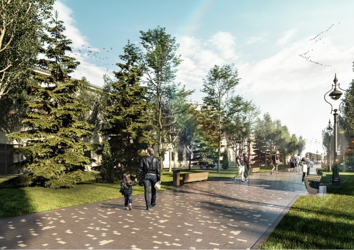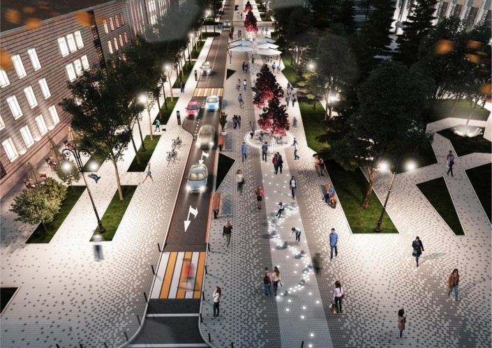 Реконструкция проводится по концепции "Город для людей". На этих улицах появится экологичная тротуарная плитка, энергосберегающее тротуарное освещение, уличная мебель, спортивные и детские площадки, современные малые архитектурные формы. Кроме того, к единому стилю будут приведены все входные группы зданий. Планируется озеленение и посадка новых деревьев с сохранением существующих, а также прокладка автоматической системы полива и замена старых арычных лотков.