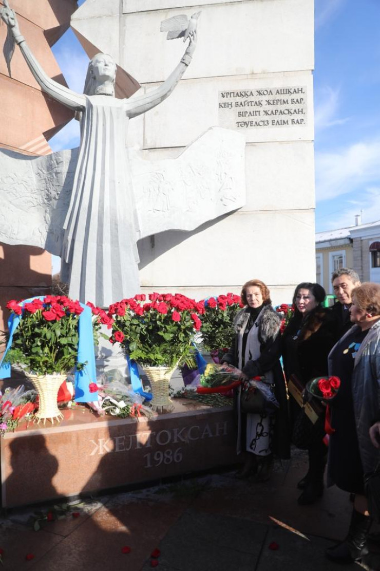 В Алматы прошла церемония возложения цветов к монументу "Тәуелсіздік таңы" в память о жертвах декабрьских событий 1986 года.