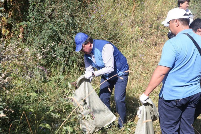 В ходе рабочей поездки в Алматы премьер-министр принял участие в экологическом субботнике по очистке ущелья Аюсай.