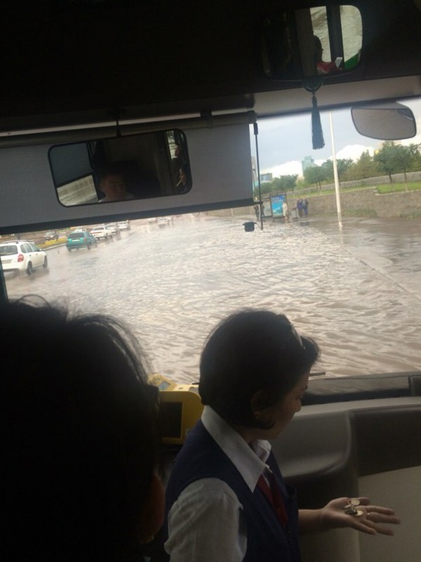"Лодку что-ли купить. Все время мечтала о машине, придется, видимо, лодку. Пассажиры в раздумье, как выйти из автобуса на "Хабаре", - написала другая жительница Астаны в Facebook Бота Ибраева, иллюстрируя таким фото.