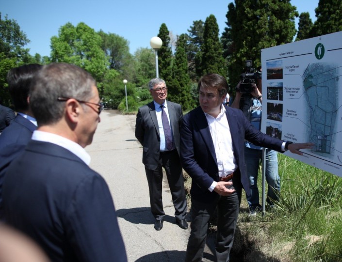 Аким Алматы Бауыржан Байбек и меценат, бизнесмен Булат Утемуратов посетили Ботанический сад для ознакомления с ходом его реконструкции.