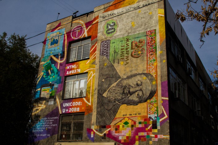 Купюра с изображением Абая появилась на здании по проспекту Абая. Автором стал российский муралист Никита Ходак из команды ZUKCLUB.
