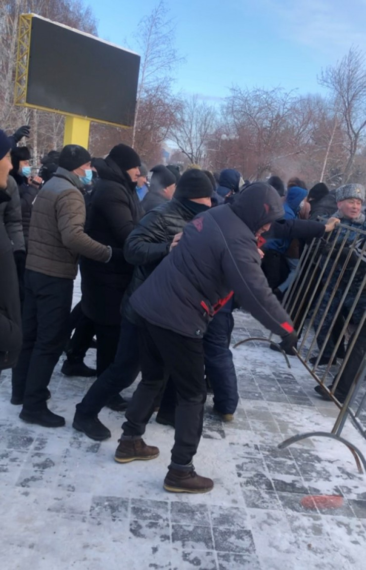 "У людей нарастала агрессивность. "Мирные" митингующие использовали в качестве тарана турникет - попыталась прорвать оцепление. В полицейских кидали лавочками, камнями. На полученные травмы никто внимания не обращал. Все профессионально выполняли свои обязанности и защищали правопорядок. Полиция с трудом уже выдерживала натиск нарастающей с каждой минутой толпы. Именно в это время оперативники задержали людей с бутылками с зажигательной смесью. Стало понятно, что митингующие нацелены на поджоги и разгромы. Чтобы не допустить такого сценария, было сразу решено укрепить здание полиции, и в случае нападения на них с целью захвата или разрушения сотрудники получили письменное распоряжение открывать огонь. В это же время оперативным штабом принимается решение на применение специальных средств - светошумовых и светозвуковых гранат", - рассказал в интервью корреспонденту Бекет Аймагамбетов.