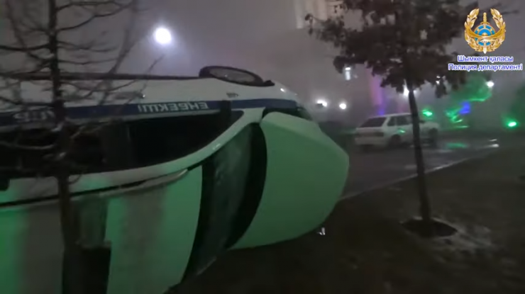 В 02.20 участники беспорядков стали разбивать и переворачивать машины полиции и воинской части, забирать из них спецсредства. Повредили 62 служебных авто, 12 из которых были перевернуты, 2 - сгорели, 1 спецмашина ДКНБ была серьезно повреждена.