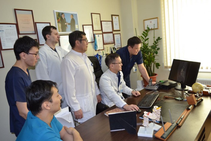 "Операция длилась несколько часов. Мы удалили пораженный позвонок, не задевая спинной мозг и корешки, заменили его на современный высококачественный имплант. При этом функция спинного мозга, нервов, сосудов, которые питают головной мозг, полностью сохранена. Это оперативное вмешательство требует от нейрохирургов не только высокого профессионализма, но и высокой точности. Малейшая неточность - и человек обречен на паралич до конца жизни. Операция прошла успешно", - рассказал заведующий отделением спинальной нейрохирургии Национального центра Талгат Керимбаев.