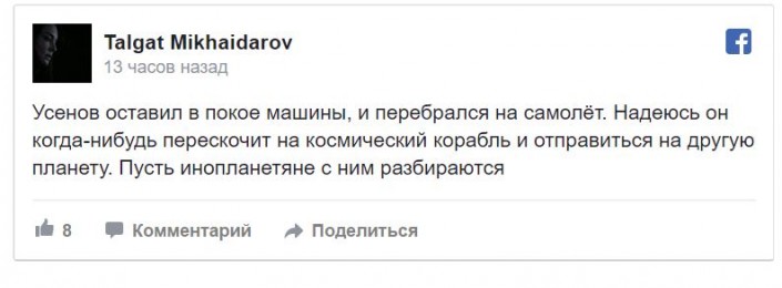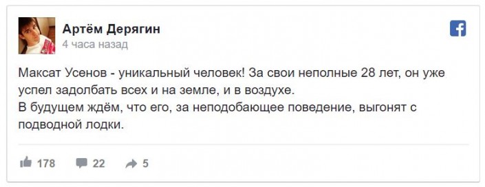"Усенов снова бомбит. Хайпанул. Он как звезда 80-х, которого забывают, а он новый финт показывает", - пишет в Twitter @rustam_max.