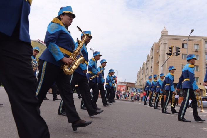 По проспекту Республики (от военно-исторического музея до дворца "Жастар") прошлись более 200 музыкантов, участников фестиваля духовых оркестров "Астана Самалы". По словам художественного руководителя Государственной академической филармонии акимата Астаны Сакена Абдрахманова, участниками парада стали пять коллективов из Казахстана, России и Италии.