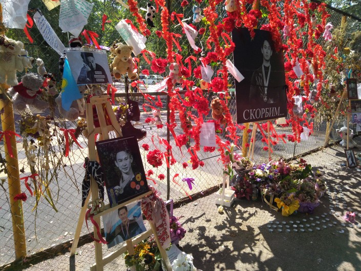 Кто-то в знак скорби повесил черные коньки, другие оставляют прощальные письма. Они написаны на русском, казахском, английском языках, встречаются и послания с иероглифами.