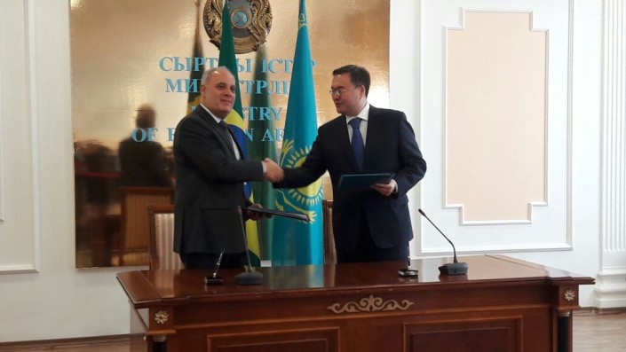 В стенах здания Министерства иностранных дел первый заместитель министра иностранных дел РК Мухтар Тлеуберди и посол Бразилии в Казахстане Деметрио Буэно Карвальо подписали Соглашение в форме обмена нотами между правительством Казахстана и правительством Бразилии о взаимных безвизовых поездках граждан. Оно позволит казахстанцам находиться в Бразилии без виз до 30 дней.