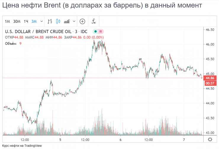 "C начала августа цены на нефть показывают небольшой рост на фоне данных о снижении запасов в США, а также взрыва в Бейруте. По мнению аналитиков, это может привести к перебоям в поставках. 5 августа цены на нефть марки Brent достигли пятимесячного максимума и перешагнули отметку 45 долларов за баррель.