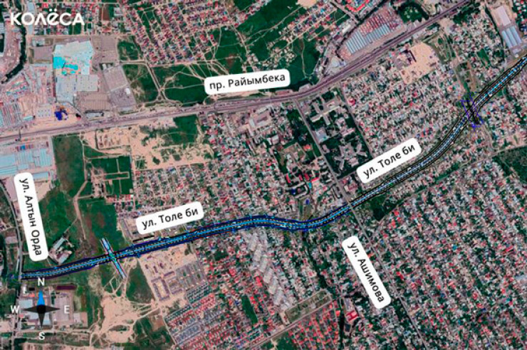 "По пробивке Толе би прошлом году была разработана проектно-сметная документация. Общая протяженность пробивки составляет 4500 метров. Проектом предусмотрено строительство шестиполосной магистральной улицы", - сообщили в пресс-службе ведомства.