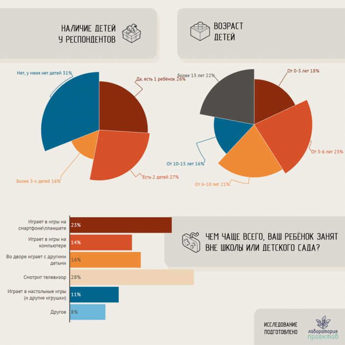 Так, например, у 28 процентов опрошенных, дети в свободное время чаще всего смотрят телевизор, у 23 процентов они играют в игры на смартфоне/планшете. Лишь у 16 процентов респондентов дети во дворе играют с другими детьми.