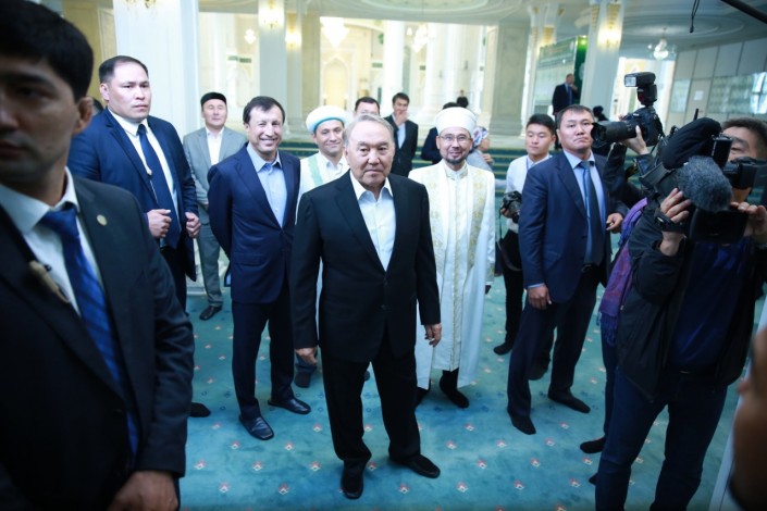 Президент Нурсултан Назарбаев посетил мечеть "Хазрет Султан" в Астане и поздравил всех казахстанцев с мусульманским праздником Курбан айт, передает корреспондент Tengrinews.kz.